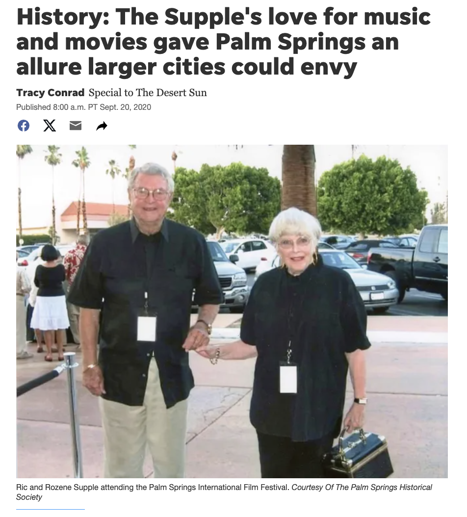 (2020) The Desert Sun: History: The Supple's love for music and movies gave Palm Springs an allure larger cities could envy